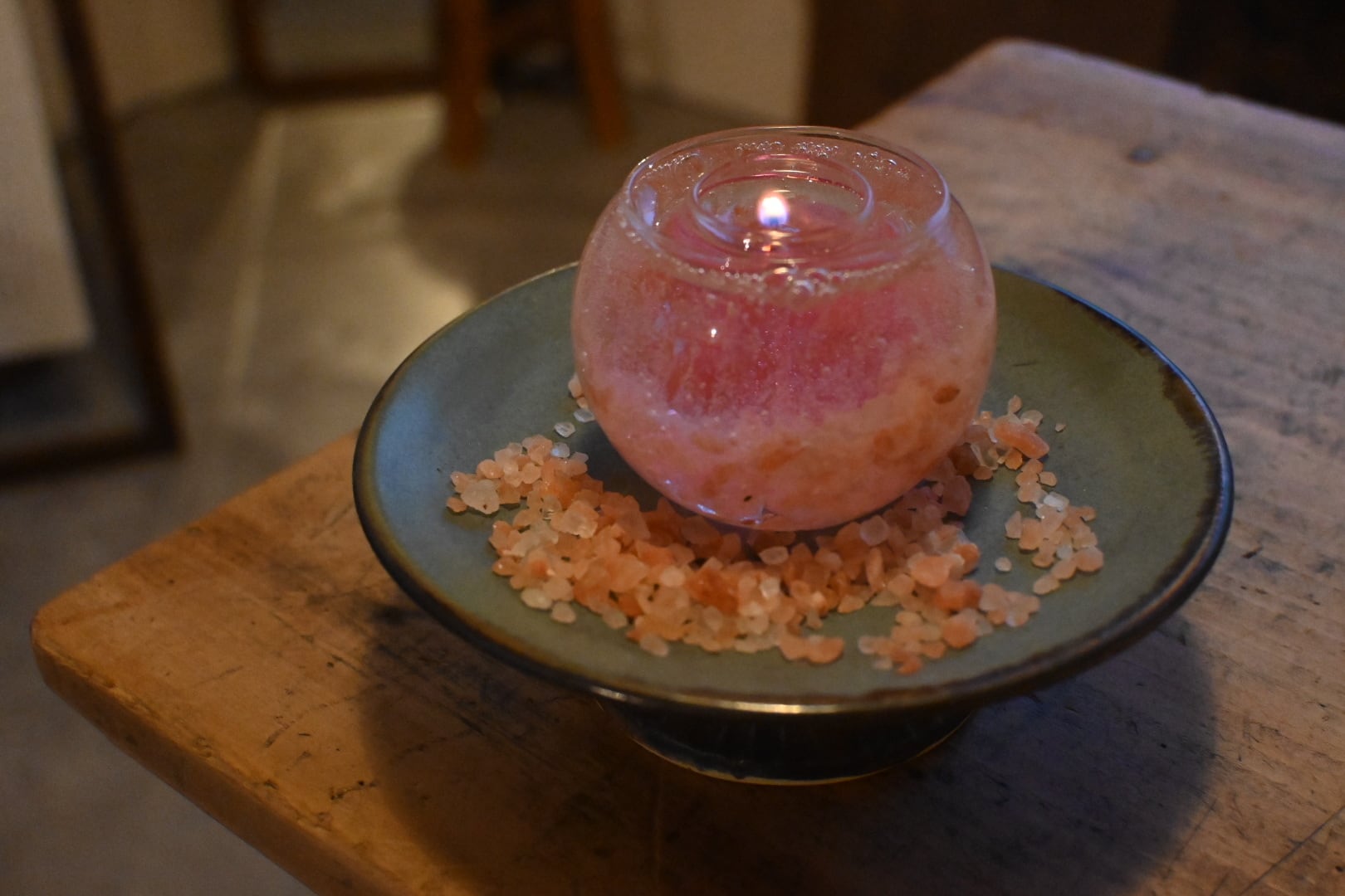 キラキラの岩塩キャンドル。