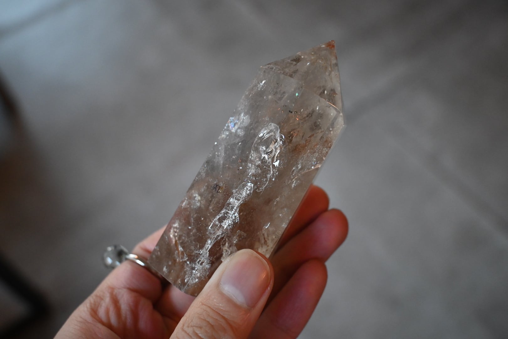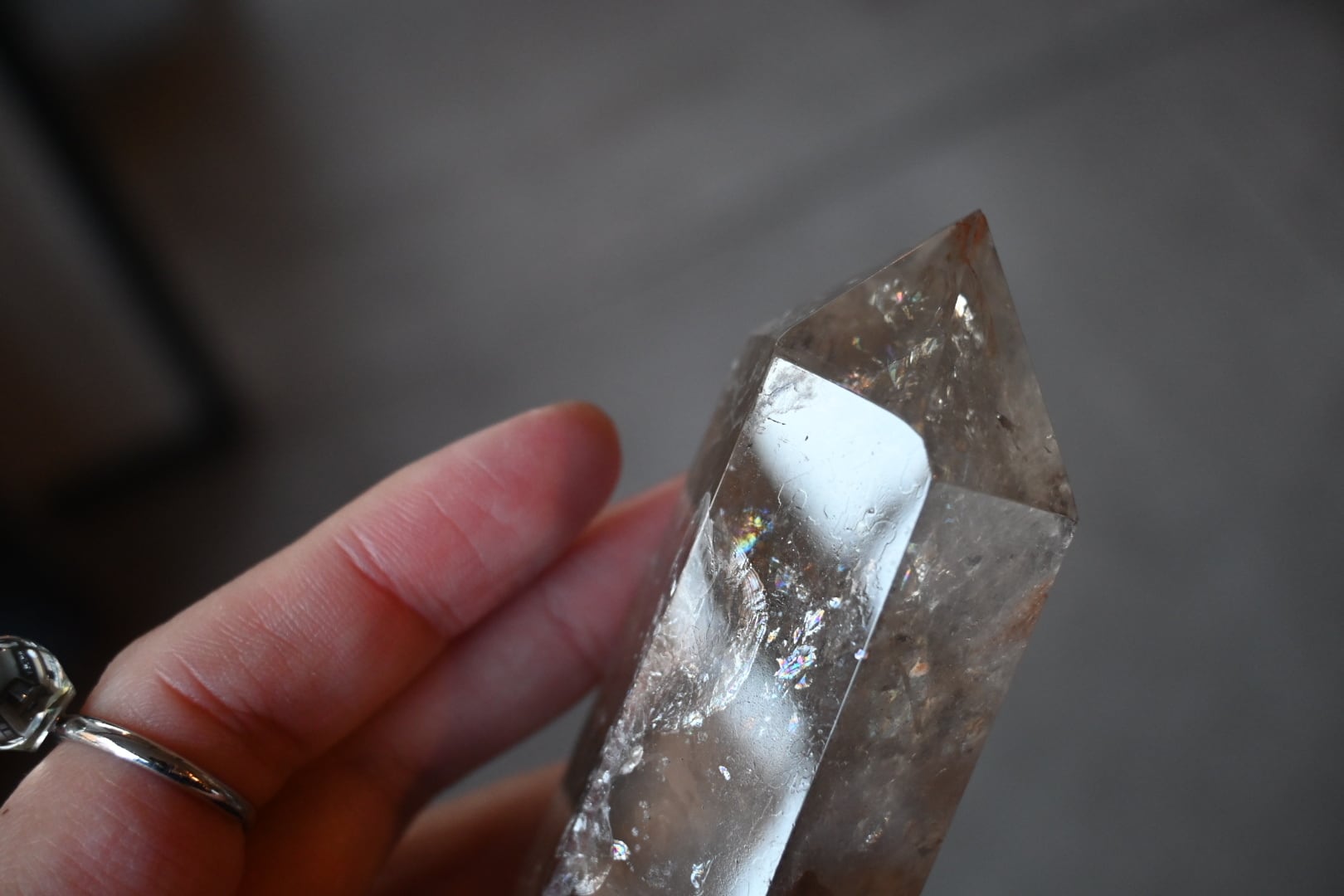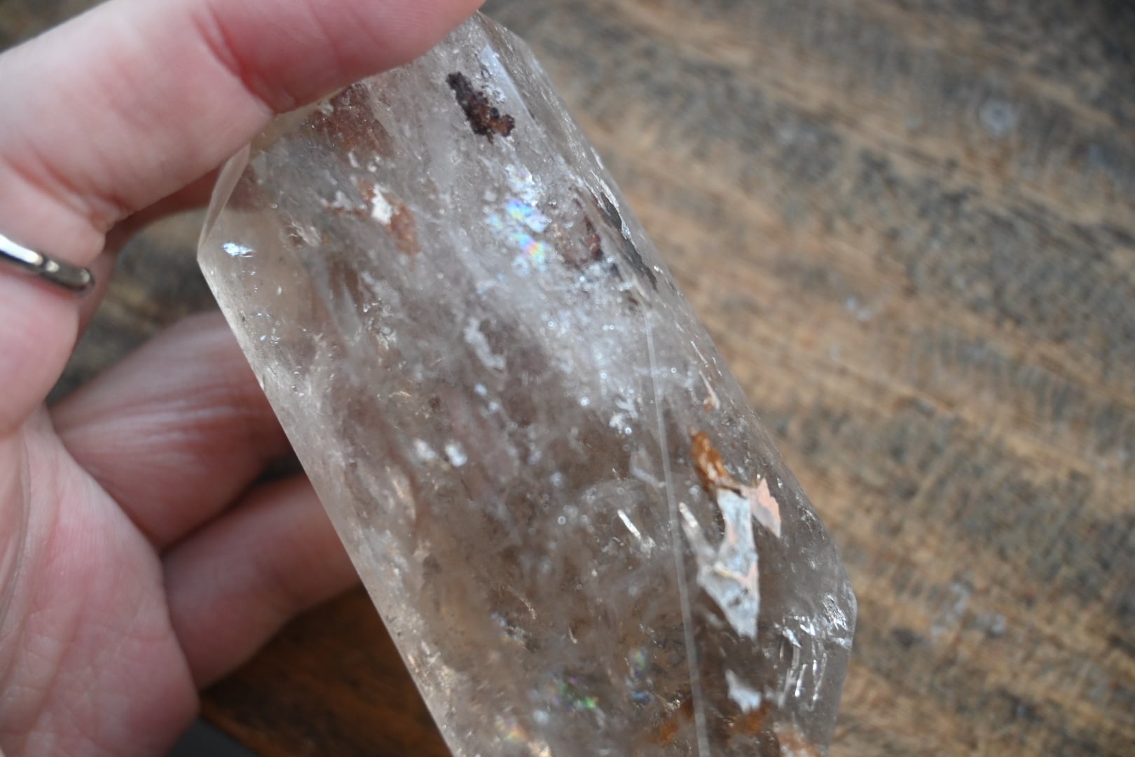 虹入りライトニング水晶柱