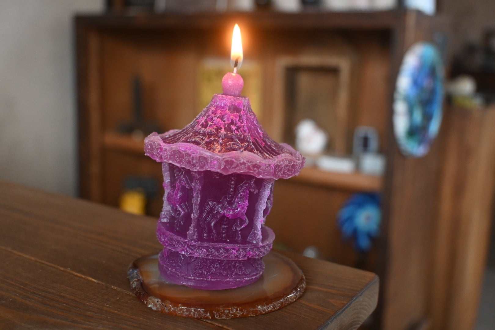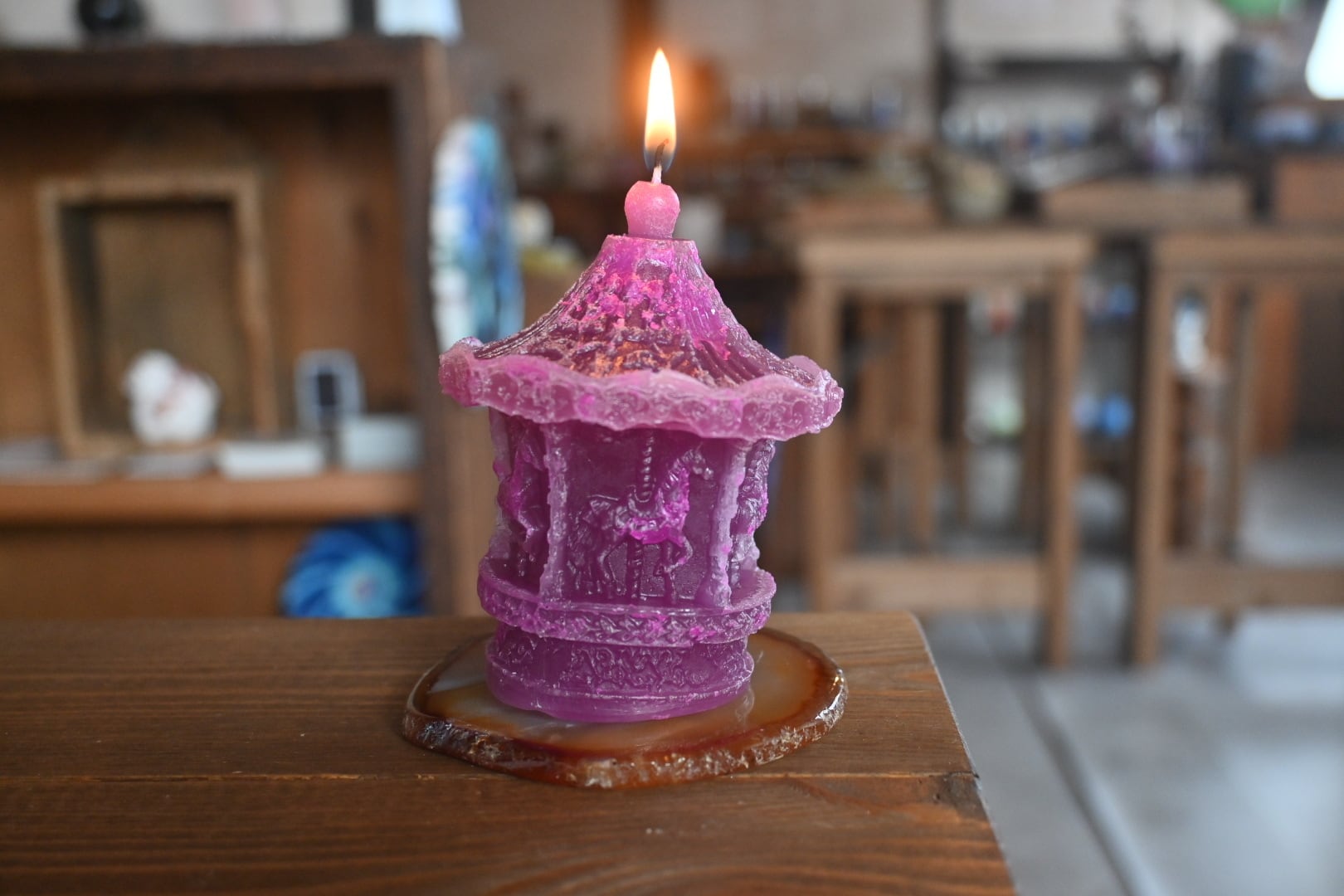 蝋燭「夜桜木馬」 紫×ピンク