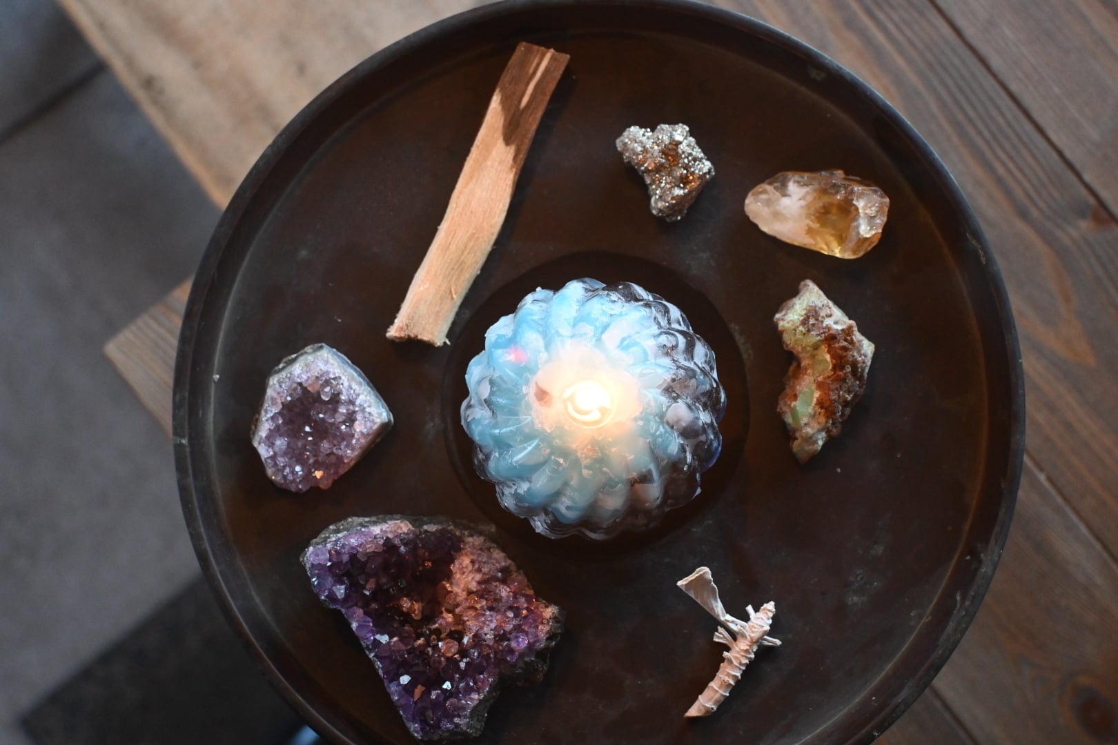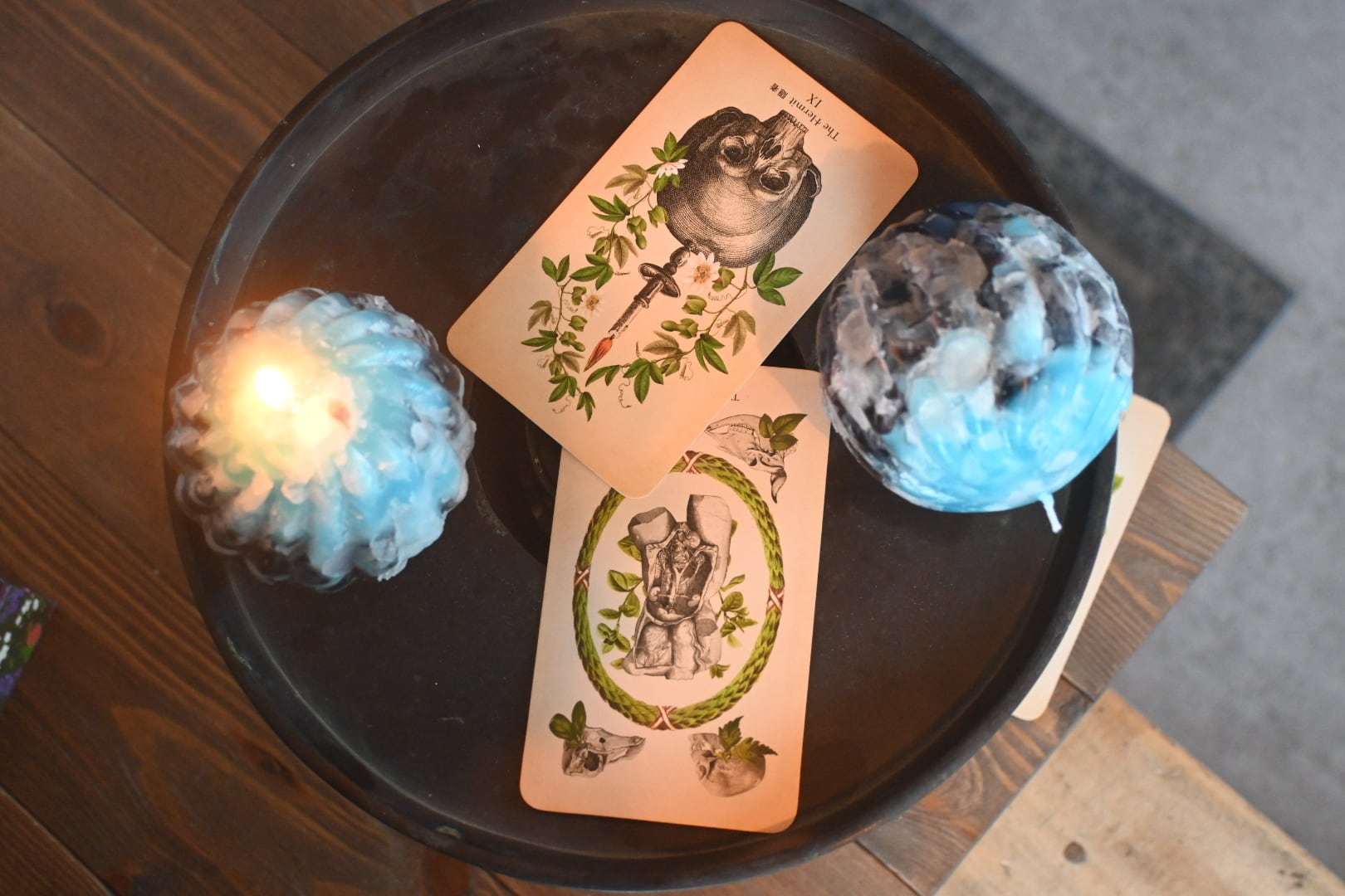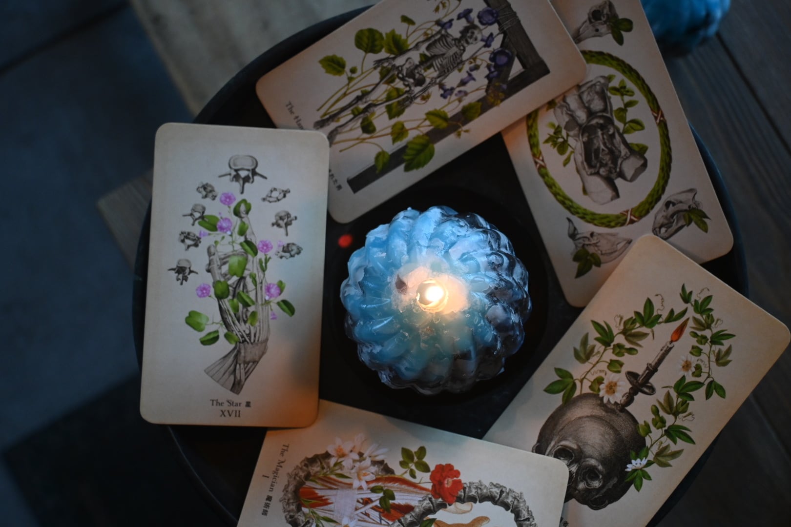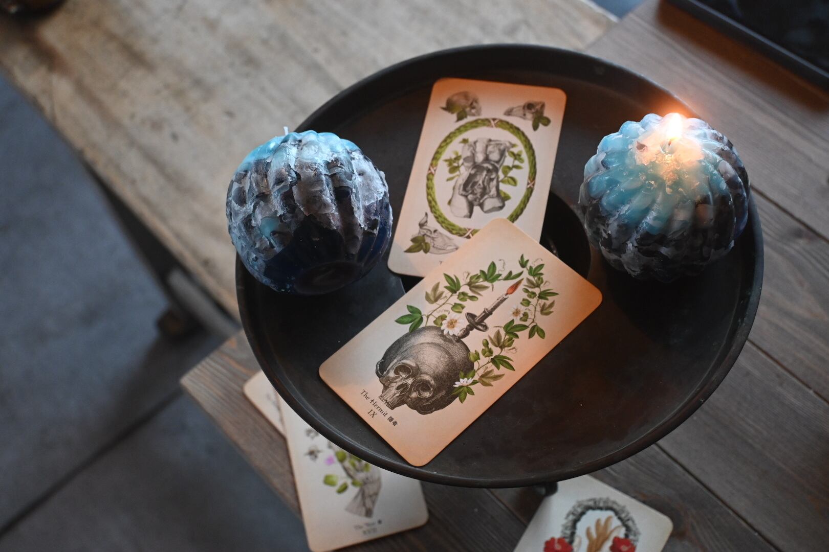 ・真っ暗な場所で灯すとお花のような影を楽しめるフラワーキャンドル。