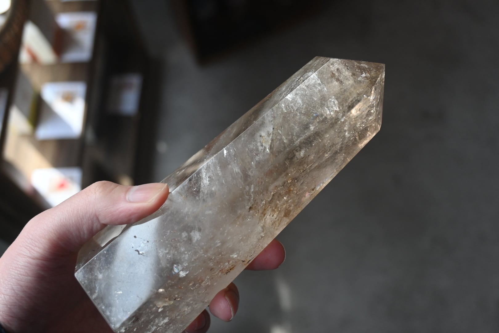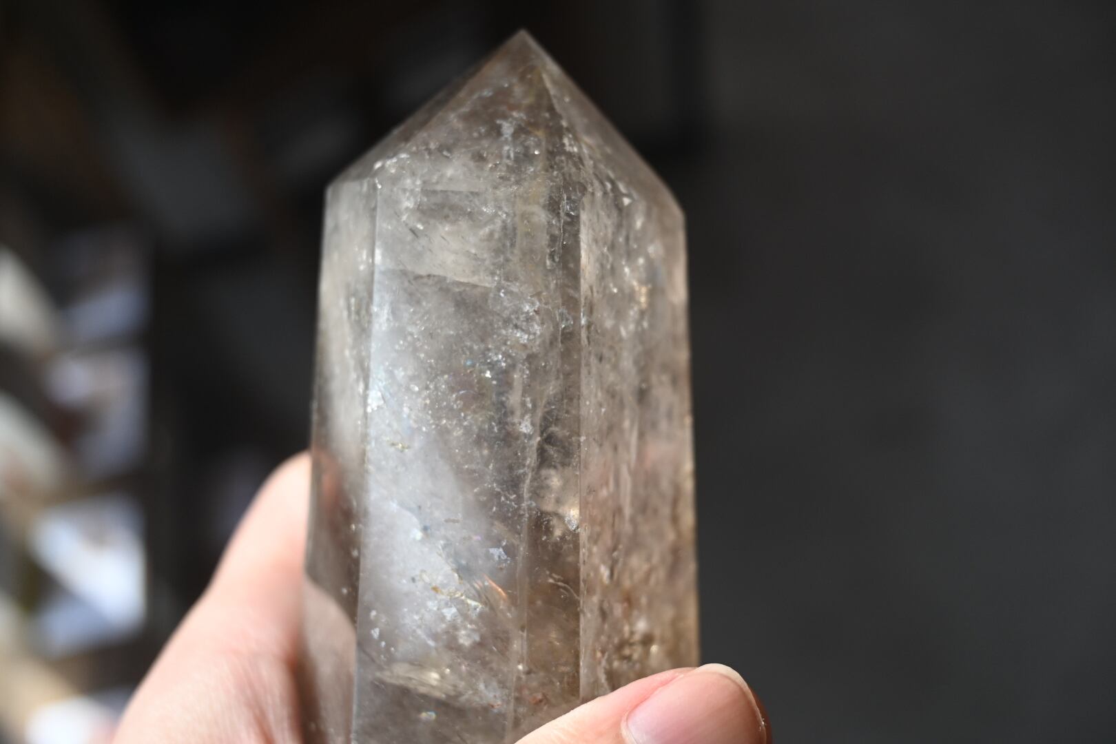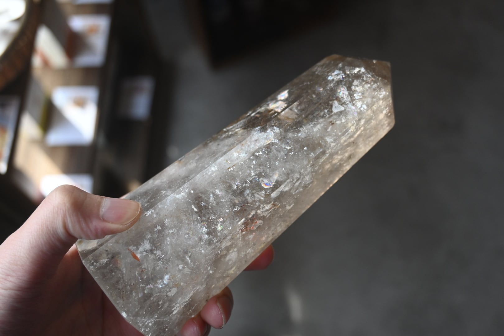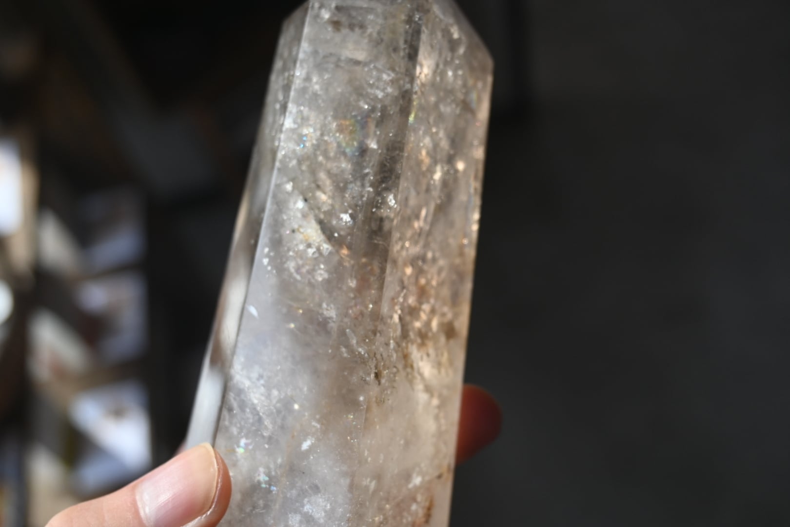 虹入りライトニング水晶柱